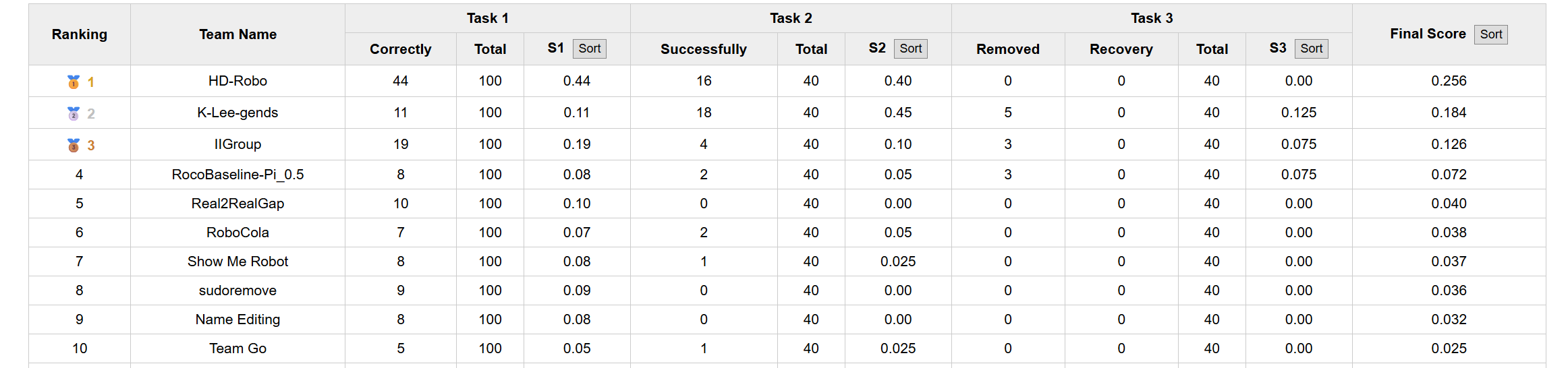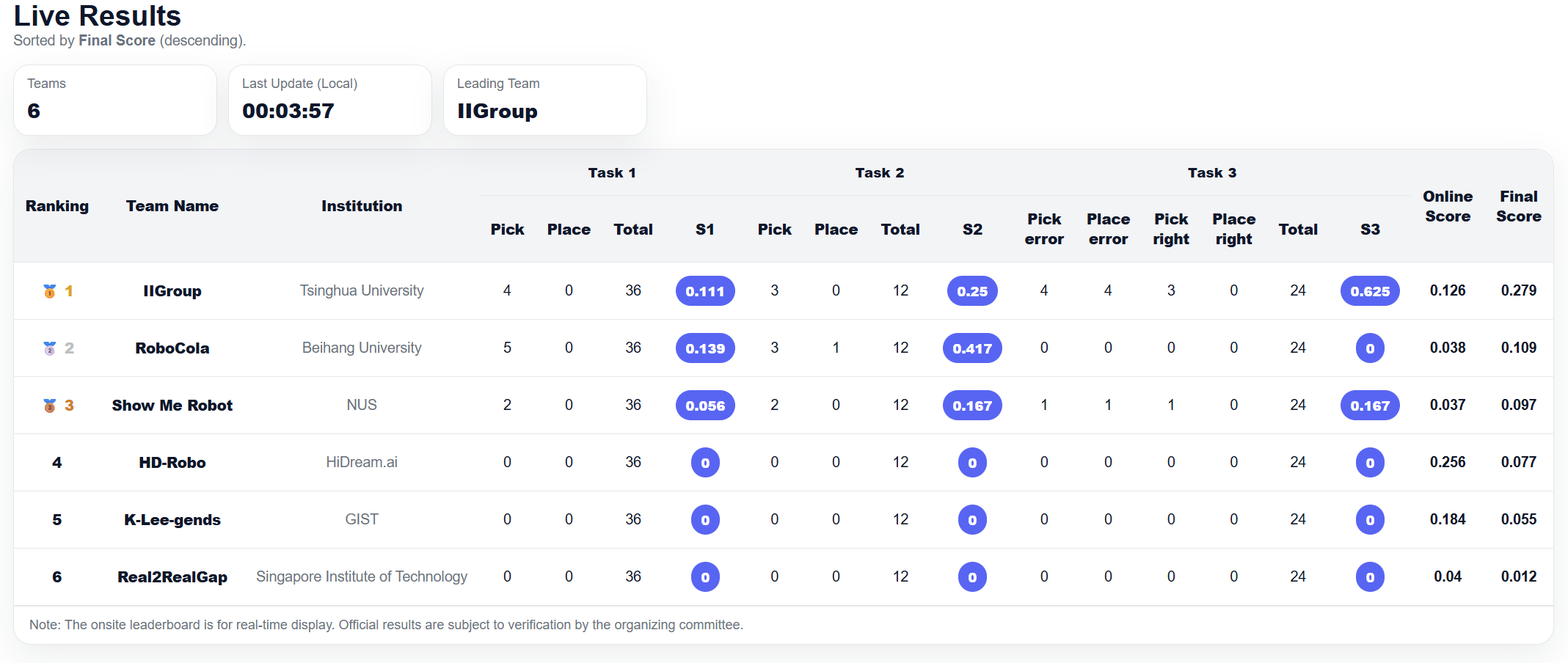 赛事包含线上仿真阶段与现场真机阶段(sim-to-real finals),以统一指标评估跨阶段可迁移性与稳定性。