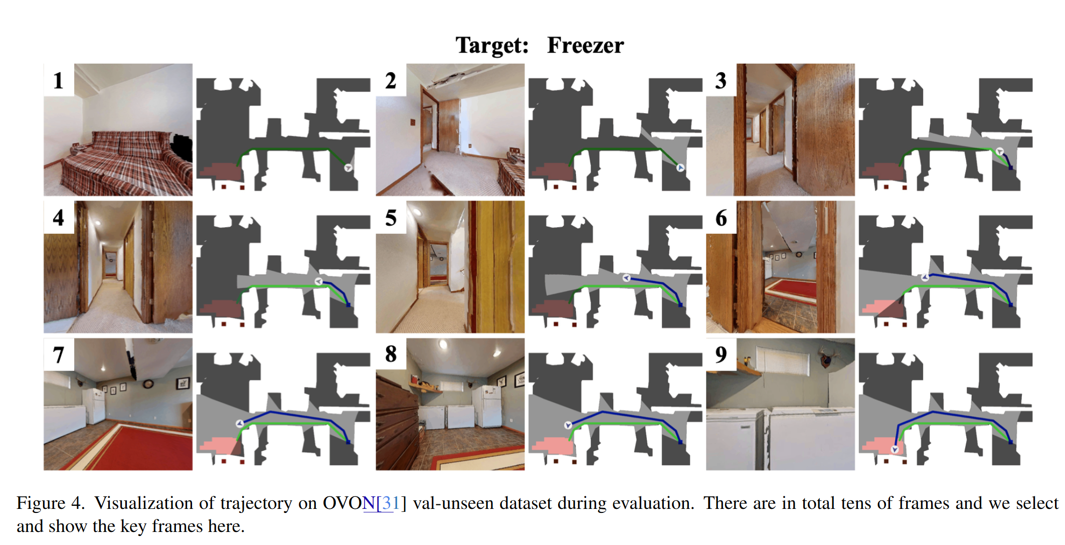 论文聚焦于具身智能中的核心挑战——开放词汇目标导向导航 (Open-Vocabulary ObjectNav)。该任务要求智能体在未见过的室内环境中,仅依据第一人称视觉输入,搜索并定位指定的目标物体。其难点在于,智能体不仅要处理熟悉的物体,还必须具备泛化能力,能够识别和定位训练期间从未见过的物体类别。